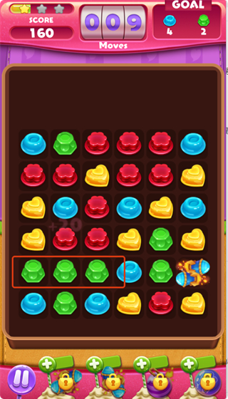 3、遇到连续同色的糖果,如绿色糖果,及时消除,可触发特殊效果,快速提升分数。