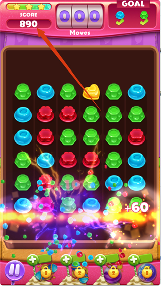 4、通过不断消除糖果,使分数持续增长,如界面中【890】所示,合理规划消除策略,争取高分通关。
