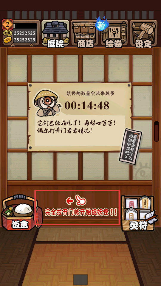 3、等待妖怪进食后,完全拉开门帐,开始捉妖怪,推进游戏进程。