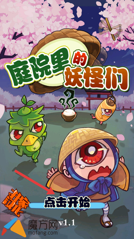 1、点击开始,进入游戏,开启庭院捉妖怪的冒险旅程。