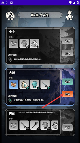 1、在第2层大难关界面,点击【战斗】按钮,挑战大难关卡的敌人。