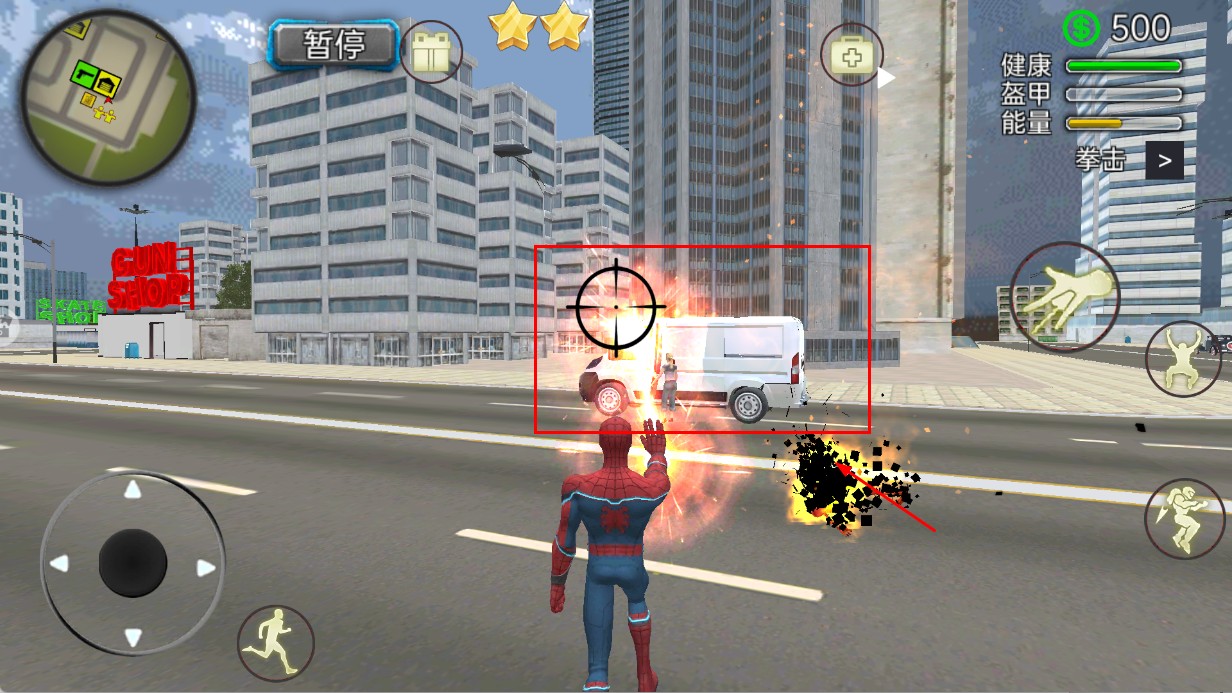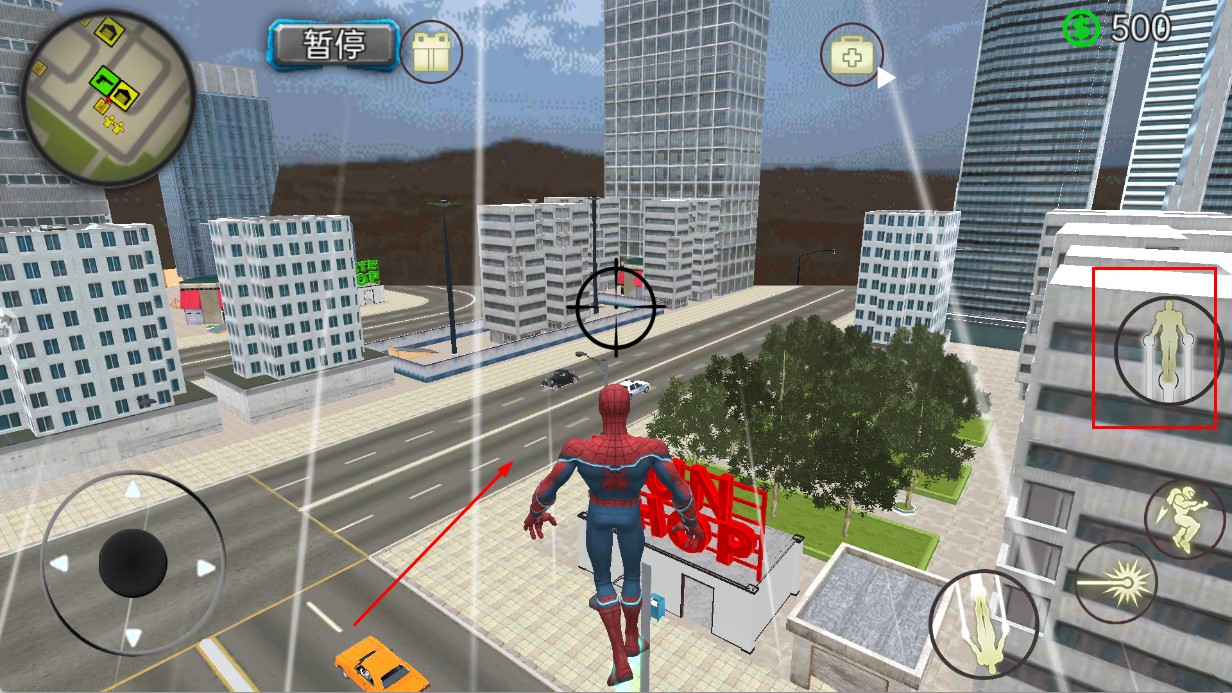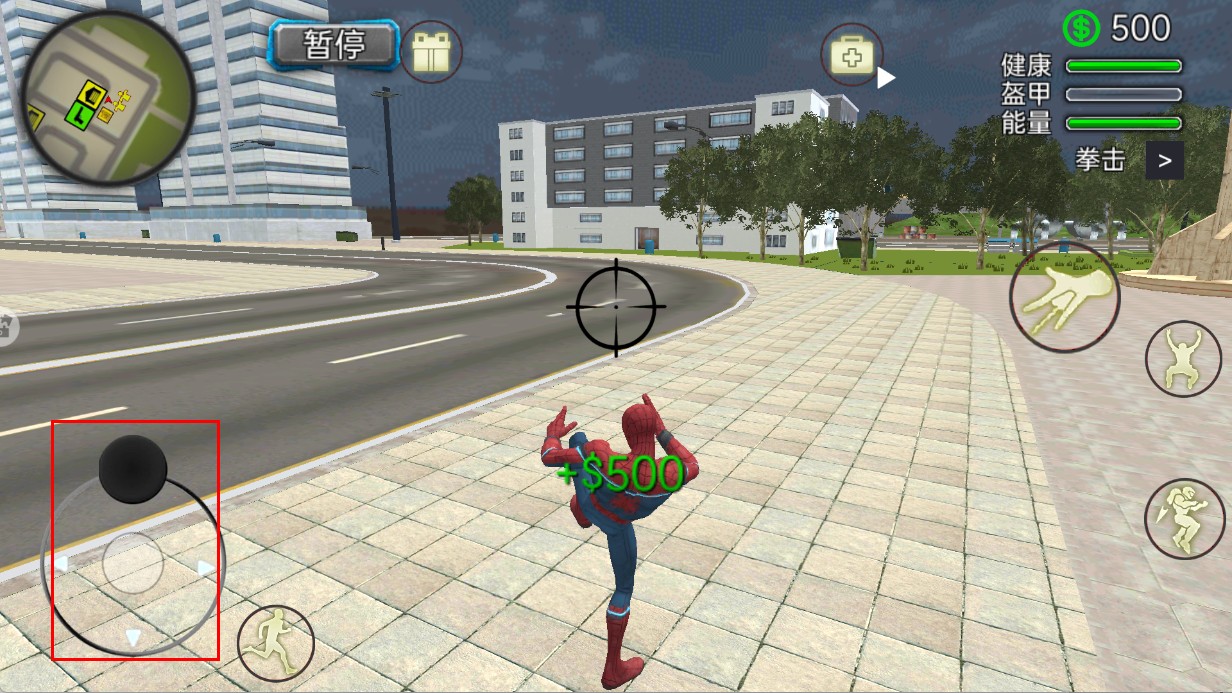 2、在城市街道移动时,用左侧虚拟摇杆控制方向,观察小地图找任务点。