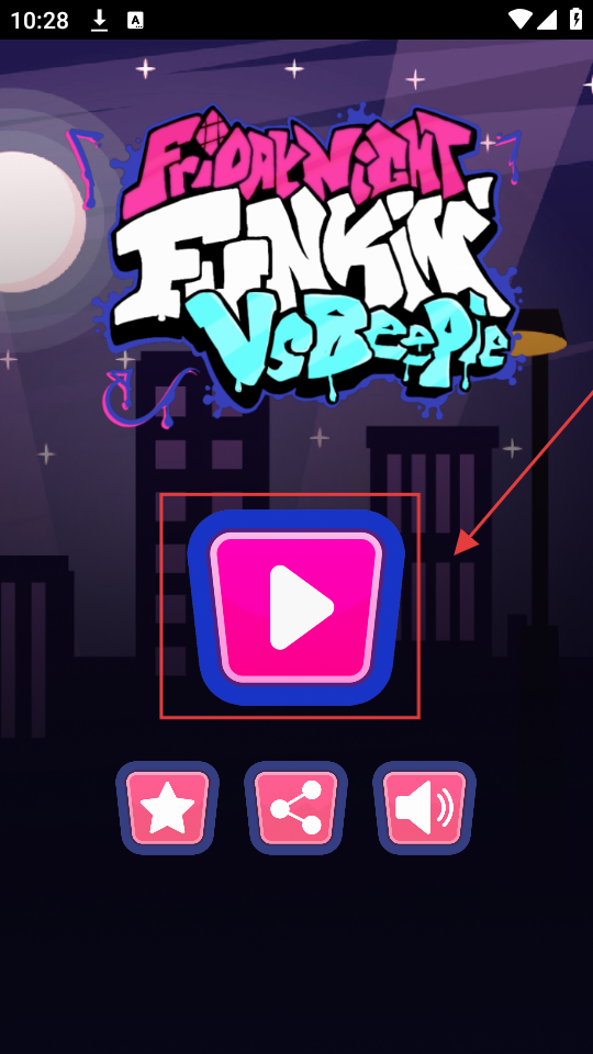 1、进入【FridayNightFunkin】-【VsBeepie】游戏界面后,点击中间的播放按钮,即可进入游戏模式选择页面,开启音乐挑战