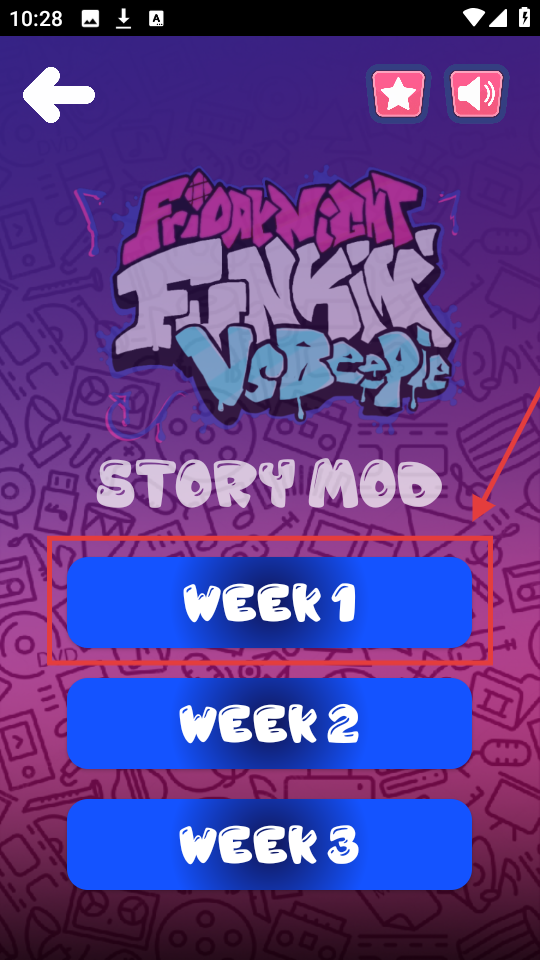 2、在游戏模式选择页面,点击【STORYMOD】下的【WEEK1】按钮,开始第一周的剧情关卡挑战