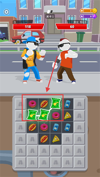 3、持续消除同图案方块(如灰色类物品),不断触发攻击,持续削减敌方血量,直至击败对手。