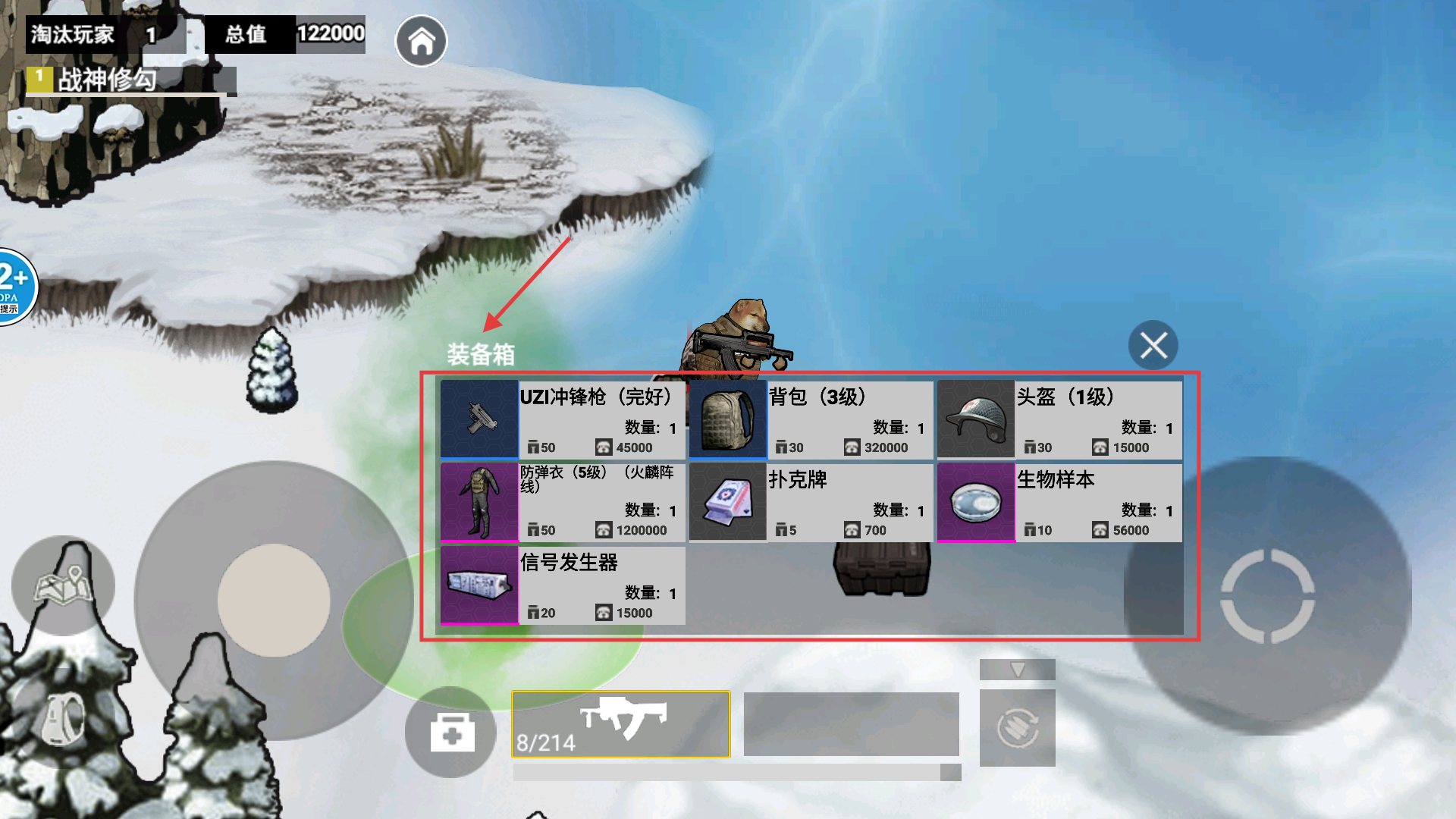 4、打开装备箱后优先选择【UZI冲锋枪(完好)】和【背包(3级)】快速提升战斗能力与物资携带量。