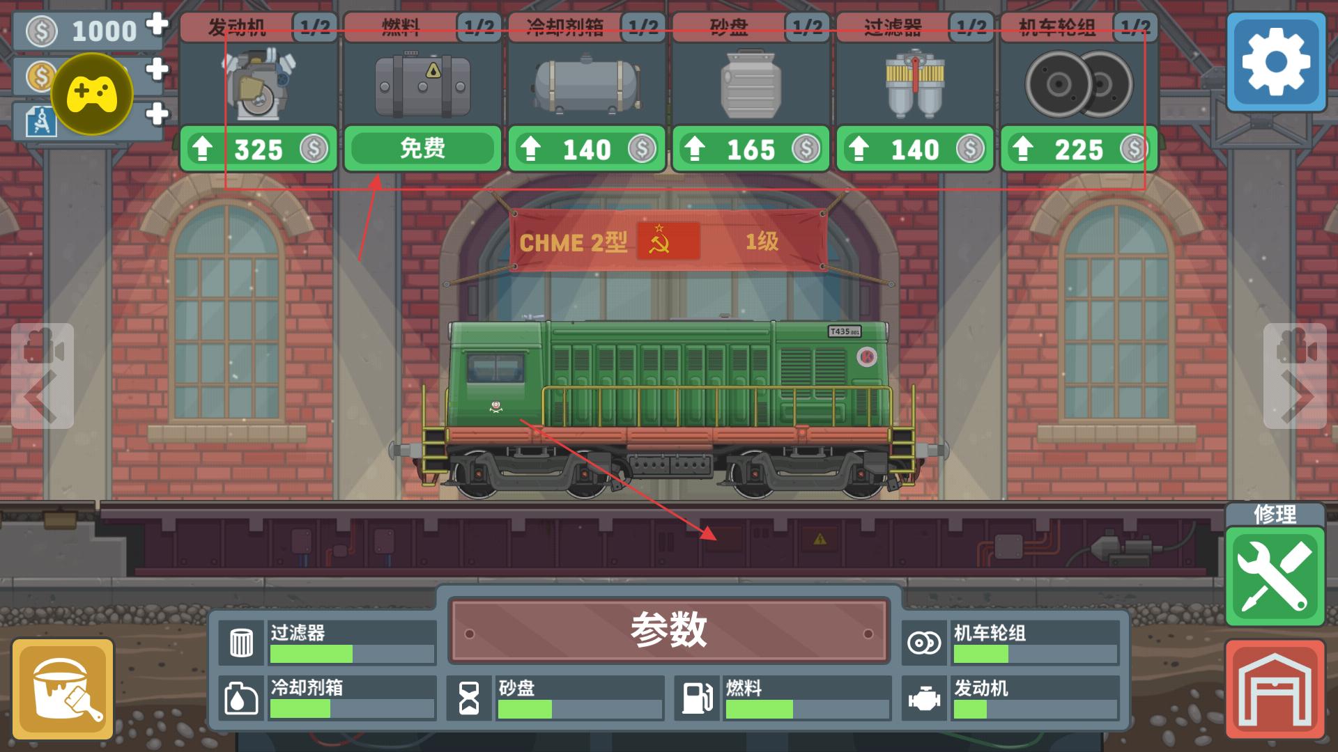 4、在升级界面消耗资源提升列车部件等级,如发动机、燃料箱等,部件升级后会增强列车的基础性能,提升运输任务的完成效率。