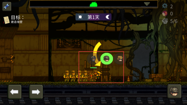 4、将流浪者部署到墙壁区域,完成【建造墙壁】的目标,推进第1天任务。