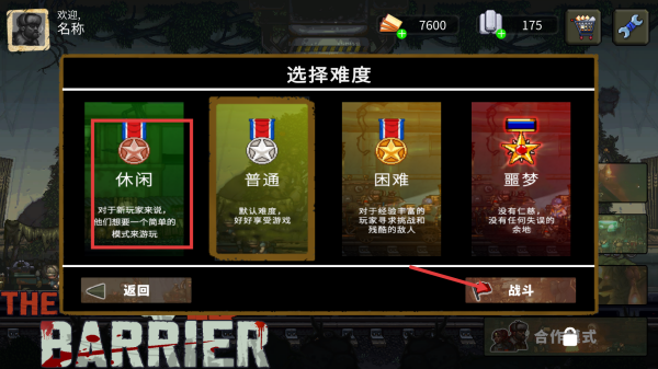 1、选择【休闲】难度,点击【战斗】进入战役,开启该难度的游戏进程。