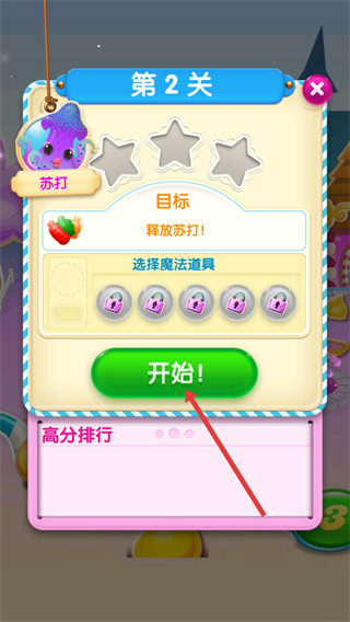 1、在关卡选择界面,点击绿色【开始!】按钮,进入第2关开始游戏。
