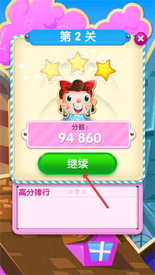 4、关卡完成后,点击绿色【继续】按钮,进入下一个环节,同时可获得分数和星星奖励。