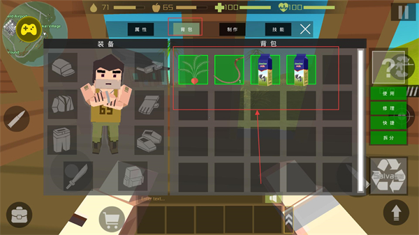 3、可打开【背包】界面可查看已收集的资源,如植物、物资等,合理管理背包可保障生存所需的物资储备。