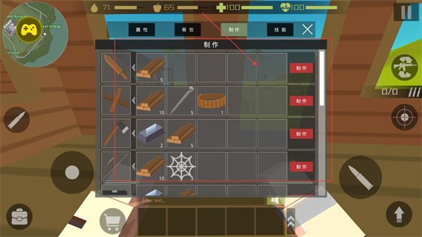 4、还可进入【制作】界面,消耗对应材料可制作工具、装备等物品,这是提升生存能力的核心途径之一。