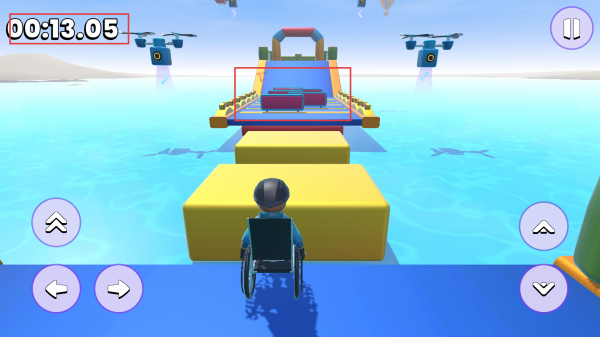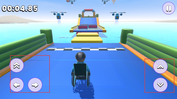 2、使用方向按钮操控轮椅角色移动,在赛道上推进,争取快速通关。