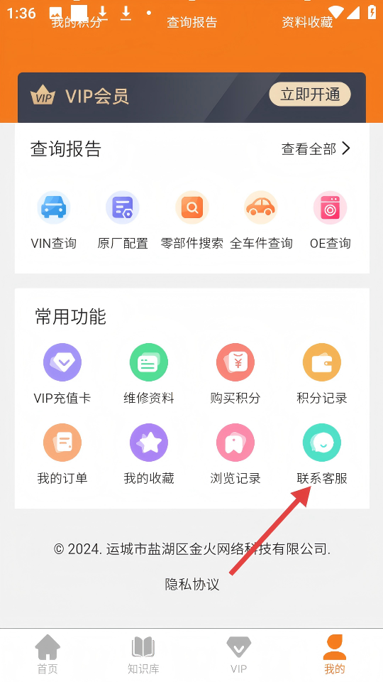 2、在我的页面的常用功能区域,点击【联系客服】选项,会弹出联系客服的窗口。