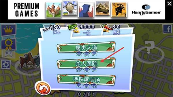 2、选择【杀人医院】关卡开始挑战。