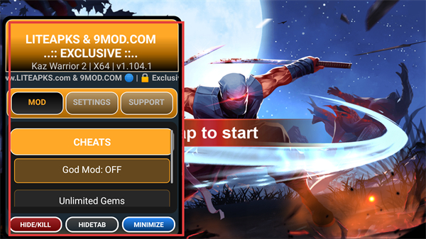 1、该版本含MOD功能,可在界面开启【God-Mode】【Unlimited-Gems】等作弊选项。