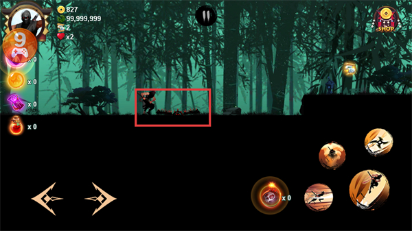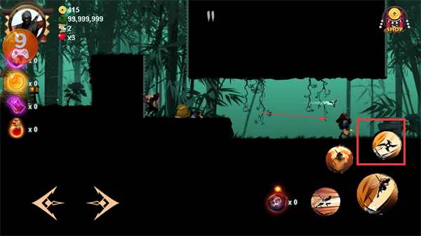 4、操控忍者移动到地面的陷阱区域时,需快速通过以避免受伤,同时留意周围敌人,及时使用技能反击。