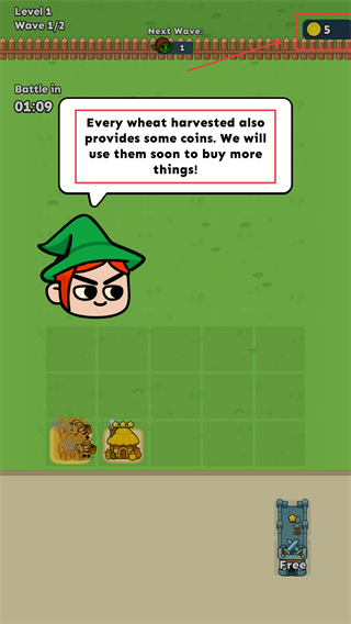 3、收割小麦可获得【金币】,需积累金币用于购买防御工事与训练军队,增强防御力量。