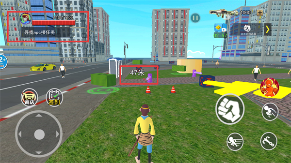 2、根据任务提示【寻找NPC接任务】,沿距离标识(如47米)移动角色,找到NPC获取任务,推动游戏进程。