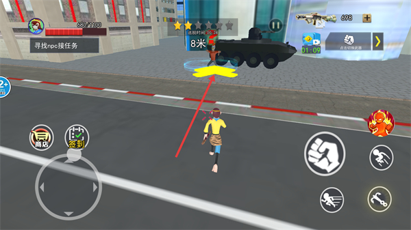 3、地图中可自由破坏、攻击NPC,没有太多束缚,加上坦克、跑车等载具可解锁,玩法自由度直接拉满,乐趣十足。