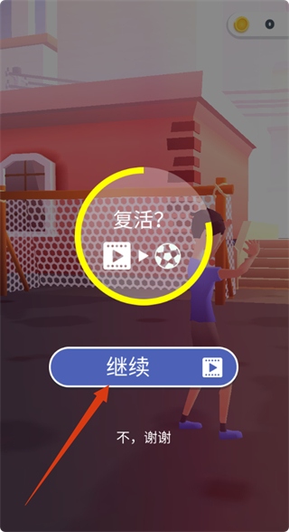 4、若射门失败,可选择点击【继续】按钮(或观看广告复活),继续参与游戏挑战。