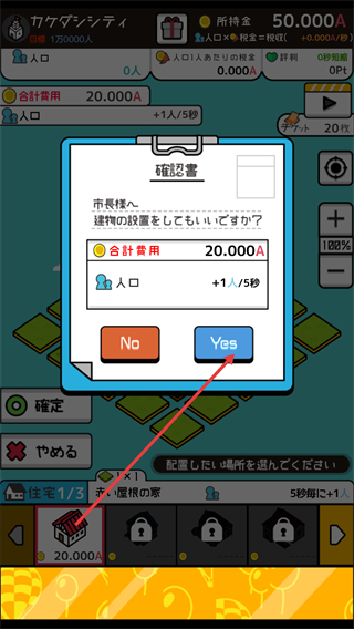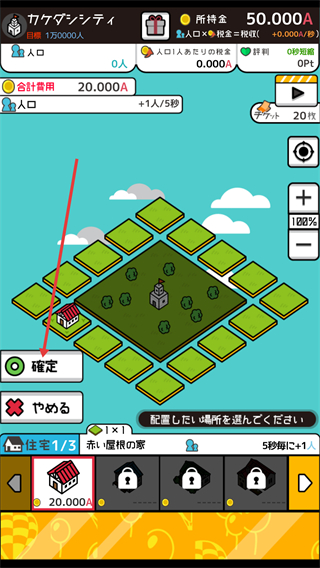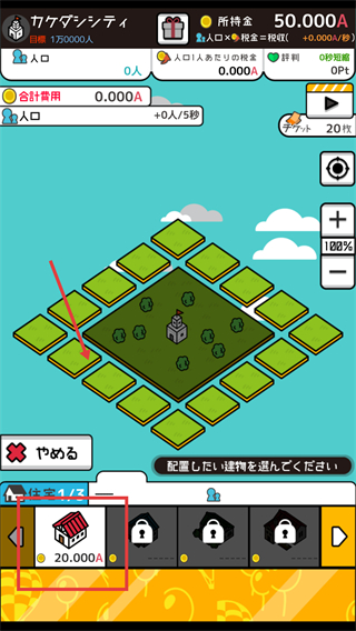 2、选择建筑(如住宅),消耗相应资金(如20.000A),将建筑放置在城市的空闲地块上。