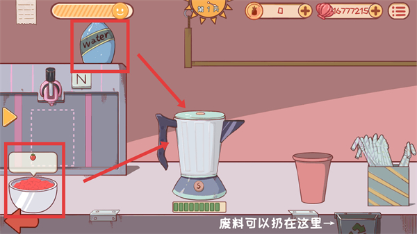 4、将制作好的饮品放入【杯子】中,递送给顾客,完成订单服务,推进游戏的经营进程。