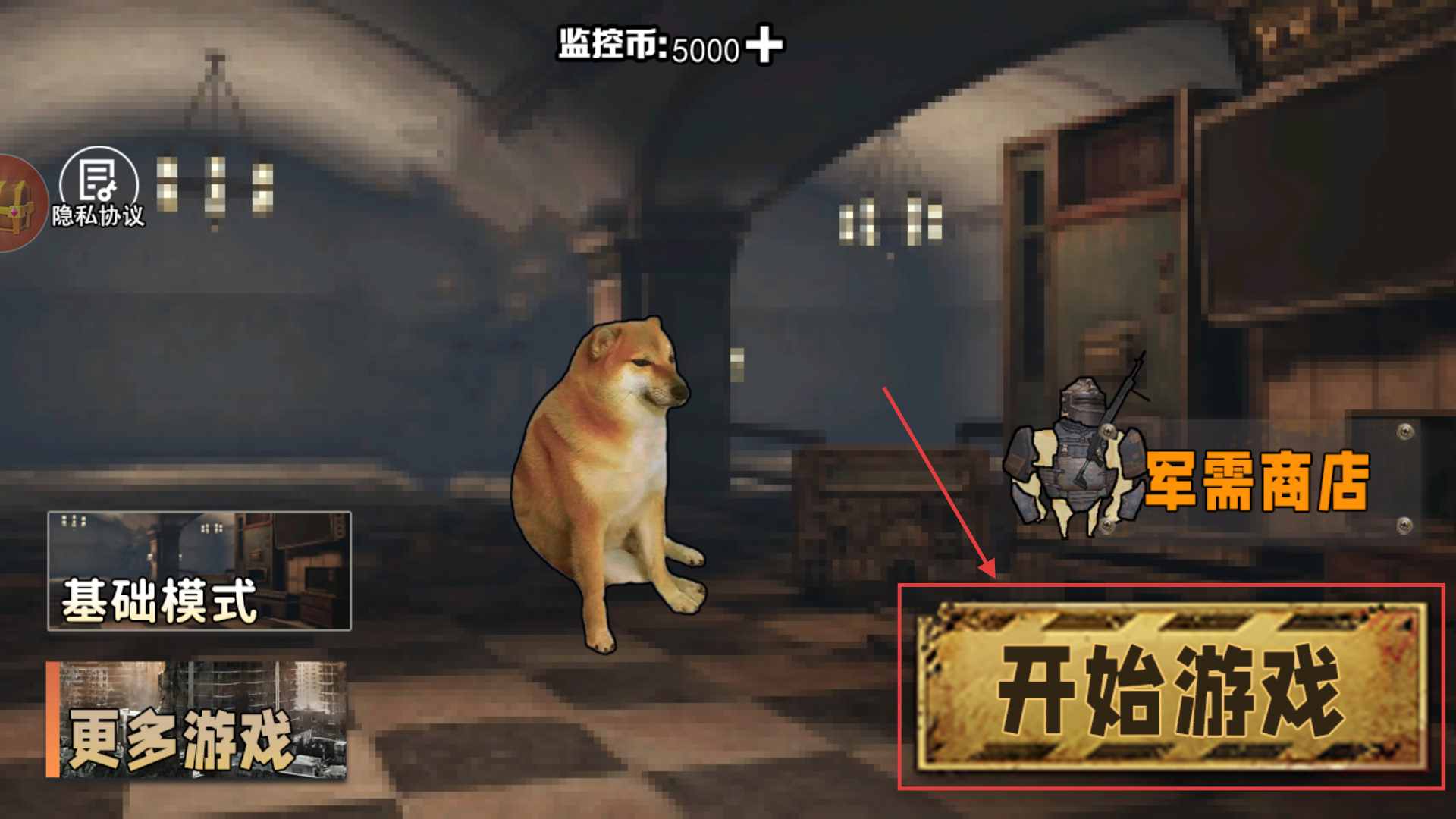 1、进入游戏主界面后,点击【开始游戏】进入关卡,可先在【军需商店】兑换装备,提升初期战斗能力。