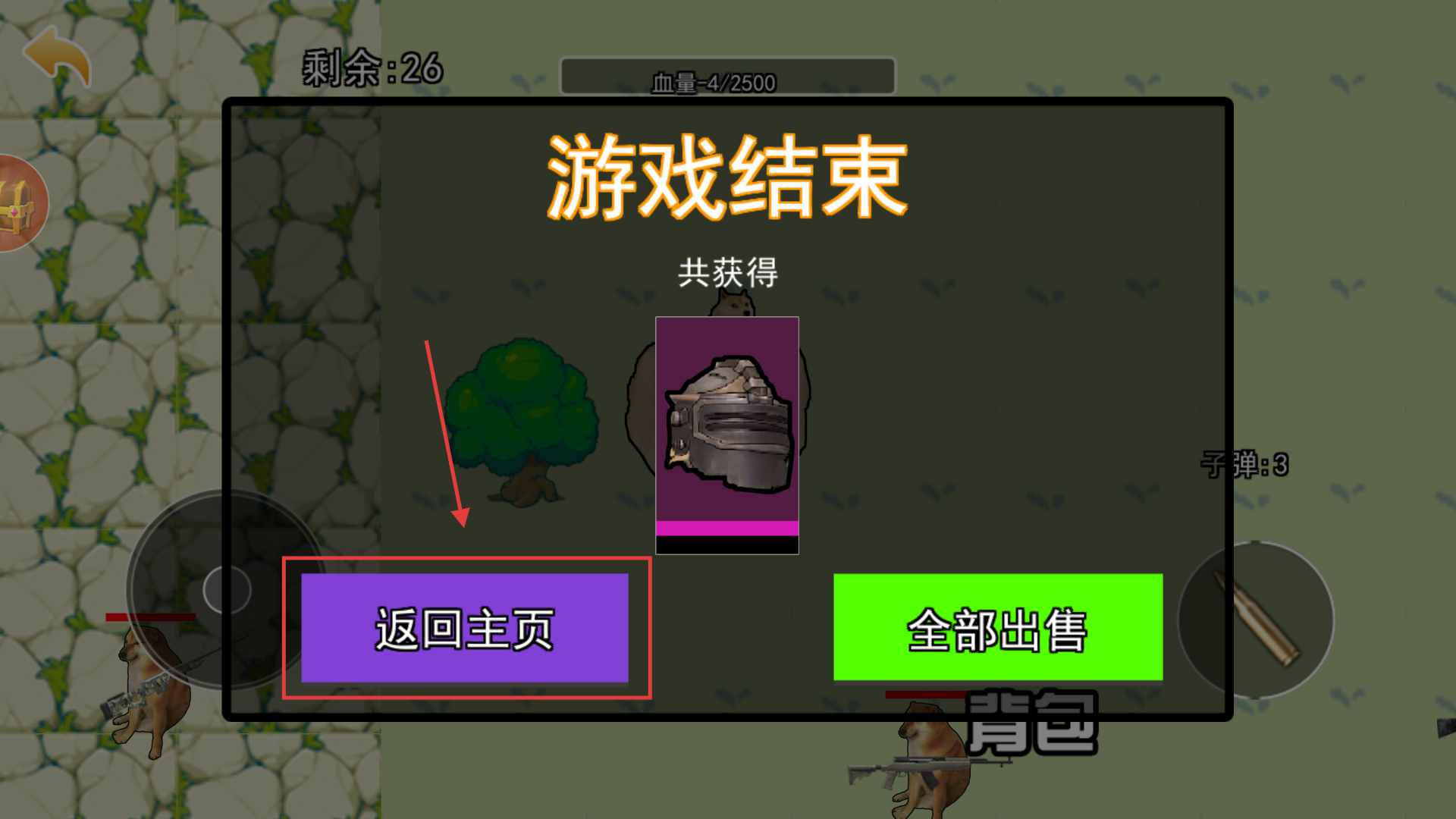 4、游戏结束后,可选择【返回主页】重新挑战,或出售获得的道具换取资源,提升角色后续战斗能力。