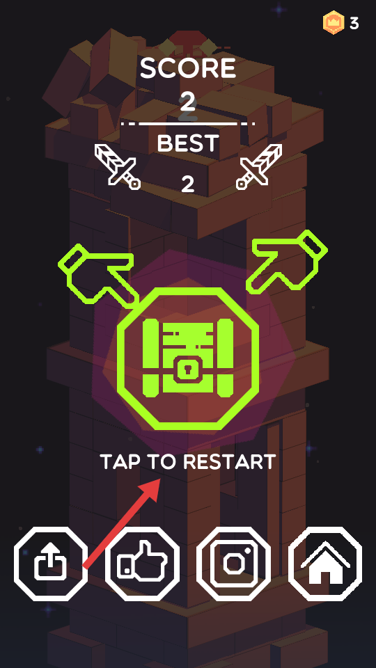 4、点击【TAP-TO-RESTART】,重新开始游戏,尝试突破最佳分数。