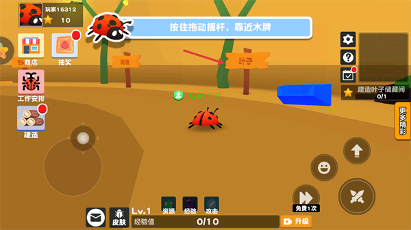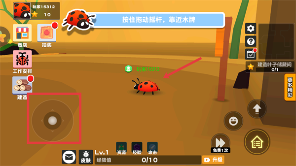 1、拖动左侧【摇杆】,操控昆虫移动。