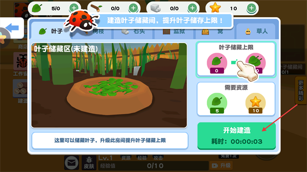 4、点击【开始建造】,等待【00:00:03】完成建造。