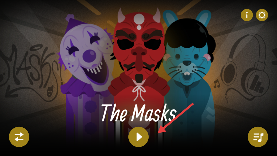 1、看到带有【The-Masks】字样的界面,点击中间黄色播放按钮,即可进入游戏。