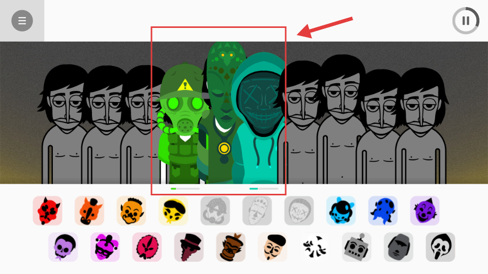 3、继续从下方选择不同面具,为多个角色装扮,能看到角色呈现出防毒面具、神秘面具等独特外观。