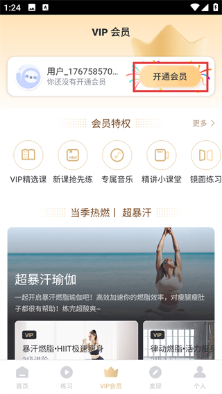 2、进入【VIP会员】页面后,找到【开通会员】按钮并点击。