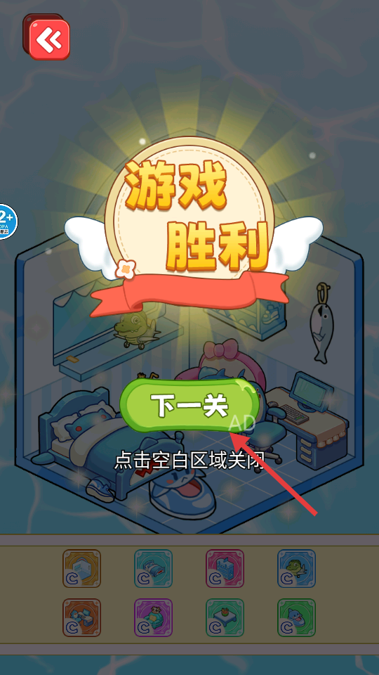 4、布置成功后,界面显示“游戏胜利”,点击【下一关】按钮,继续挑战新的房间布置。