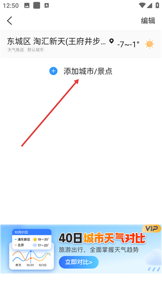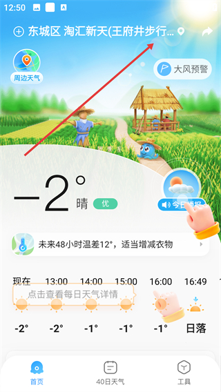 1、打开2345天气王APP,在首页点击顶部的位置名称(如“东城区”),进入位置管理页面。