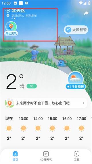 恶劣天气提前发布预警,从容应对各类突发天气状况;更有15日和40日超长天气预报,旅行农忙早规划。