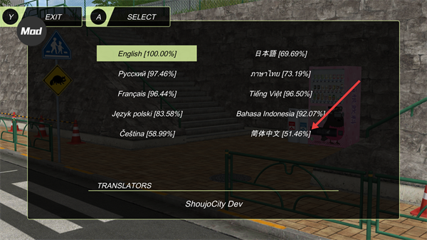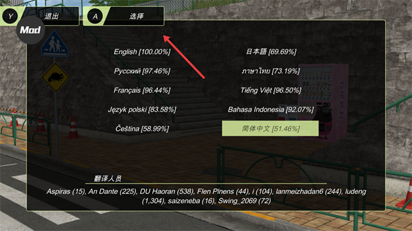 4、选中【简体中文】后,点击界面上方的【选择】按钮,完成游戏语言的切换。