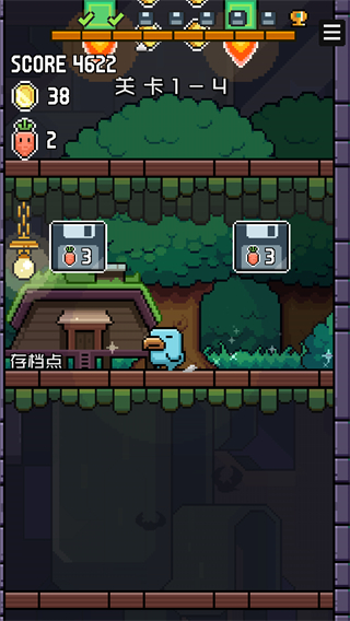 3、找到存档点及时保存游戏进度,确保得分、金币和道具不丢失,为后续关卡探索提供保障。