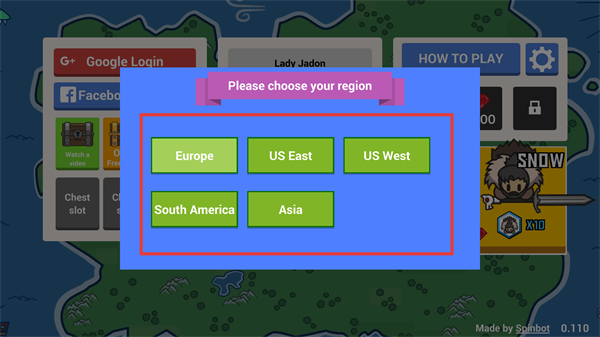 1、进入游戏后选择所在区域,需根据自身位置选择对应区域。