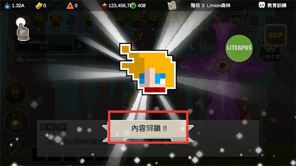3、当出现【内容解锁!!】提示时,意味着新内容开启,可继续探索游戏新玩法。