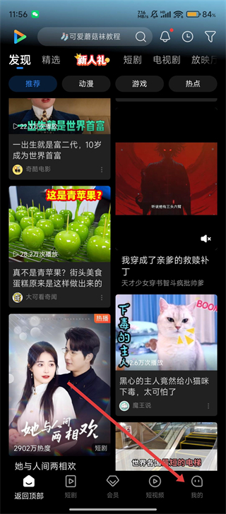 1、打开小米视频App,点击下方【我的】进入个人界面,开启修改密码的操作流程。
