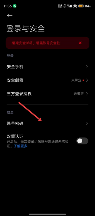 4、进入登录与安全页,点击【账号密码】,按照提示操作就能修改密码,轻松保障账号安全哦。