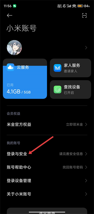 3、在小米账号页,找到【登录与安全】选项并点击,密码修改的入口就呈现在眼前啦。