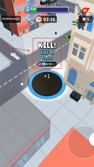 3、升级至【LVL4】后寻找更小对手吞噬,触发【KILL】提示获击杀数,增强对战优势与等级提升速度。