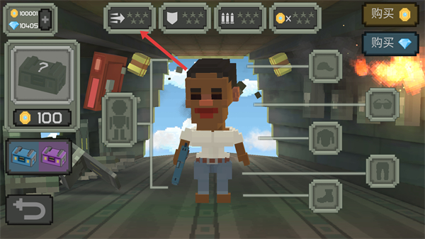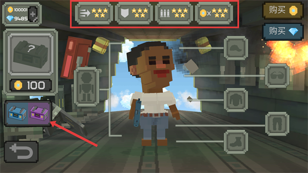 4、升级红框内的属性后,点击左侧物资箱获取道具,借助提升的属性优势,更好地参与对局。