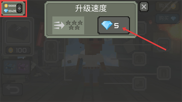 3、在【升级速度】界面,消耗【5】钻石提升速度属性,增强角色机动性,助力后续战斗与生存。