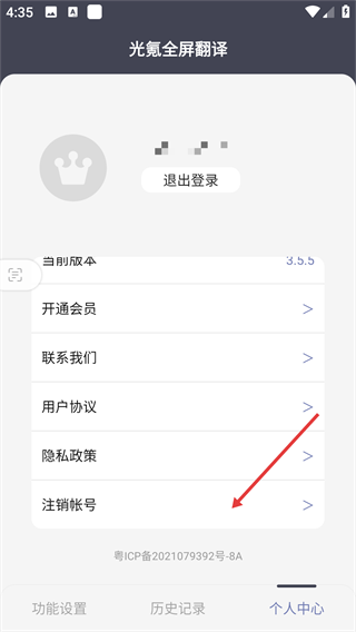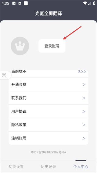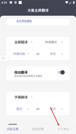 1、打开光氪全屏翻译,在设置页面点击底部【个人中心】。
